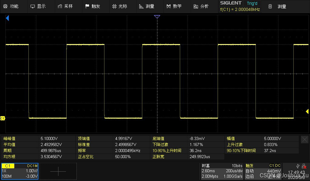 计算公式:占空比 = (有效电平时间 / 总周期时间)× 100%